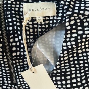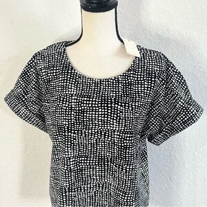 MELLODAY Black White Printed Boxy Blouse Cuff Sleeve Medium NWT Business Office