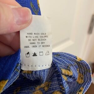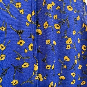 This elegant sleeveless blouse by MELLODAY showcases a vibrant blue hue adorned with whimsical yellow floral patterns. The ruffled design adds a touch of sophistication, making it a perfect choice for casual outings or a day at the office. Crafted from lightweight fabric, it ensures comfort and style throughout the day. This is one you need to see to appreciate how deep and vibrant the colors are. I’m not familiar with this brand it’s just a strikingly beautiful blouse!