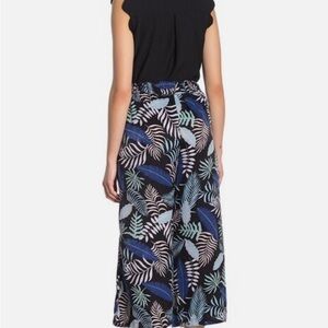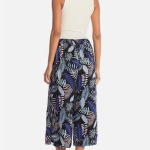 A wide leg adds an on-trend update to these chic cropped pants. - Elasticized waist - 2 front slant pockets - Solid - Allover print (Black tropical leaves) - Wide leg , 12.5 inseam- ImportedFiber Content100% polyesterCareHand wash coldAdditional InfoModel's stats for sizing: - Height: 5'8" - Bust: 34" - Waist: 24" - Hips: 34" Model is wearing S