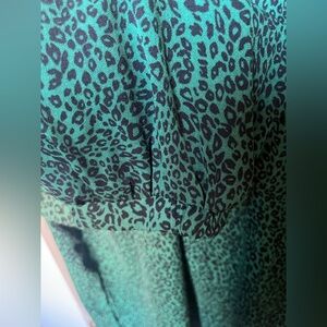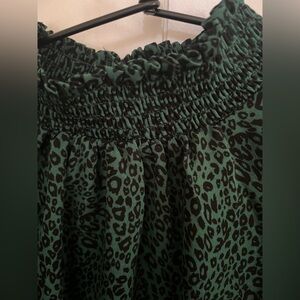 Stylish emerald skirt with bold animal print. Perfect for a standout look.