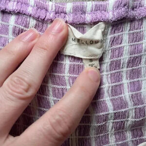 Chic midi dress with pink and white stripes. Features button front and tie straps. Perfect for casual outings.