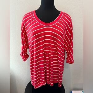 MELLODAY | Red & White Striped Soft Knit V-Neck Top NWT | Size Large