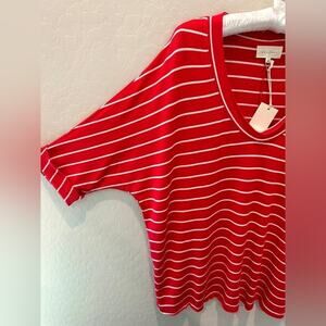 MELLODAY | Red & White Striped Soft Knit V-Neck Top NWT!