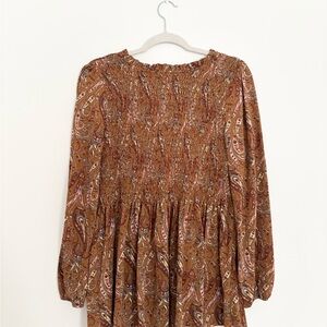 Chic rust blouse with floral pattern. Features ruffle details. Ideal for everyday wear.