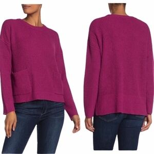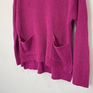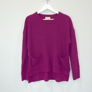 MELLODAY Two Pocket Knit Sweater Women's Berry Purple Crew Neck