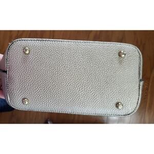 Elevate your accessory game with the Mellow World Purse Crossbody, a versatile piece that combines functionality with style. Wrapped in premium faux leather with a classic solid pattern, this medium-sized bag showcases a chic goldish brownish color scheme. The gold-plated hardware adds a touch of elegance, complementing the overall design. Featuring a spacious interior lined with black fabric, the bag includes inner pockets to keep your essentials organized. The adjustable 18-inch strap ensures comfortable wear across the body, while the additional cross-body strap and top handle offer varied carrying options. With its secure zipper closure and exterior pockets accentuated with button details, this crossbody is as practical as it is stylish.