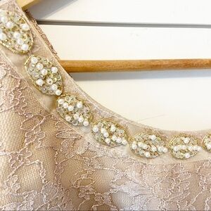 MELROSE | Champagne Lace Knee Length Formal Dress With Neck Embellishments 16