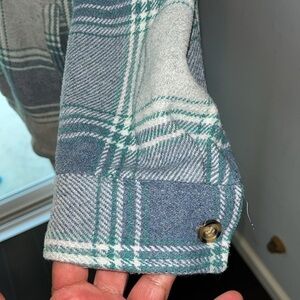 ❄️ "SHACKET" SHIRT/JACKET WOOL BLEND SIZE MEDIUM THIS IS VÉRY THICK AND WARM. DYED YARN PLAID WITH FUNCTIONAL POCKETS COZY RELAXED FIT. BEAUTIFUL COLORS LIGHT BLUE, SAGE GREEN & VERY LIGHT GRAY & OFF WHITE ❄️VERY HEAVY SHIRT THATS WHY THEY ARE CALLING THEM SHACKETS