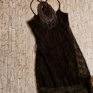 MEMLASE dress. Made in USA. Size XL. Sheer on the bottom. Used only twice. Dress has a lot of stretch, looks great with leather jacket blazer or sweater.