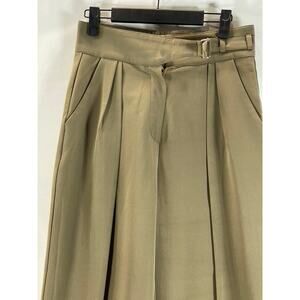 MEMO Women's Relaxed Loose Fit Pleated Waist Adjustable Strap Olive Pants SZ M