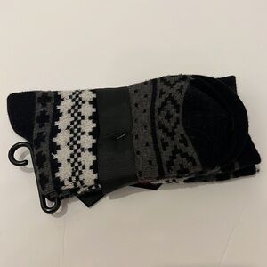 MEMOI WINTER FAIRISLE CASHMERE BLEND SOCKS BLACK GREY OS NWT