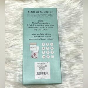 Includes photo memory album, 8 pvc acid free photo pages, holds 16 3.75 in x 5 in photos. Milestone belly stickers for every month of baby’s first years.
