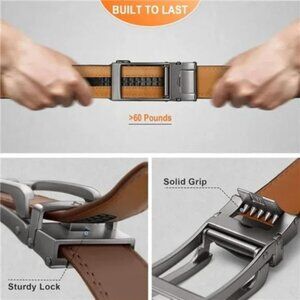 MEN Leather Belt, Ratchet Click Sliding Genuine Leather Adjustable Belt
