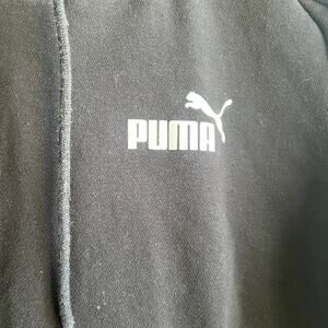 Stylish black hoodie with Puma logo on the front and forearm. Comfortable and versatile.