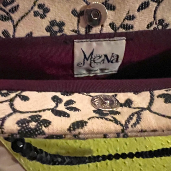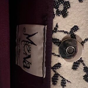 Check out this black and white MENA New York mini purse with a charming embroidered floral pattern on a durable canvas exterior, this satchel/top bag with beaded handle is a versatile choice for various occasions, from formal gatherings to casual outings. Its off-white color palette accented with black floral embroidery silver magnetic hardware and a wine-colored lining offers an elegant contrast, making it a standout piece in any wardrobe. The bag's compact design, with a semi-circle shape and a size of 8 inches in width and 7.5 inches in height (excluding fringe), is perfect for carrying essentials. Double handles, a magnetic closure, and a 5.5-inch drop make it easy to carry and access contents. Additional beaded detailing and fringe accents add a touch of sophistication and whimsy to this uniquely styled bag, crafted with care in the United States.