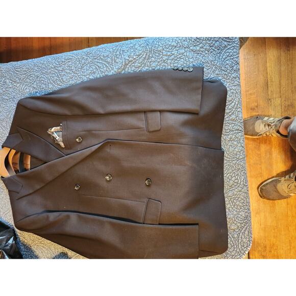 MENS 2 BUTTON SUPER 150S BLACK WOOL FEEL SUIT FLAT FRT PANT .