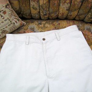 MEN'S 34 x 32 KHAKI PANTS, FLAT FRONT COTTON, LIGHT TAN, BEIGE, CREAM, EUC