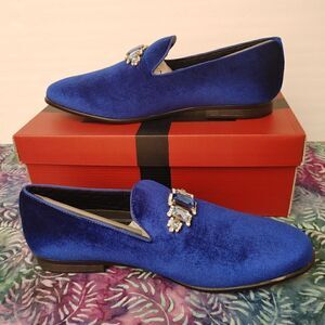 MEN'S AMALI FAUX VELVET SLIP ON LOAFER WITH JEWELED BIT AND MATCHING PIPING. 12D