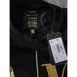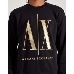The product is a stylish men's Armani Exchange crewneck sweatshirt in size medium. It features the iconic logo accent on the front, making it a fashionable choice for casual wear. The pullover style and black color make it versatile and easy to pair with various outfits. Made with quality material, this sweatshirt is sure to be a comfortable and trendy addition to any man's wardrobe.