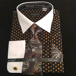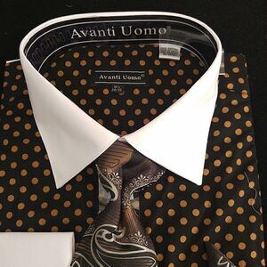 Avanti Uomo black and brown dress shirt combo pack. Shirt, tie, pocket square, cuff link.