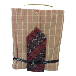 Red and gold glen plaid pattern with red and gold abstract tie and pocket square Combo Pack.