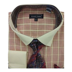 MEN'S AVANTI UOMO RED GLEN PLAID PATTERN WITH SOLID COLLAR & FRENCH CUFFS DN107M