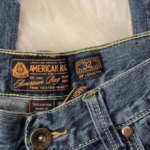MENS American Rag Straight Leg Jeans Medium Wash Relaxed Denim 32 100% Cotton