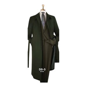 MEN'S BLACK DIAMOND 100% WOOL FULL LENGTH GREEN DUSTER COAT DS-3.