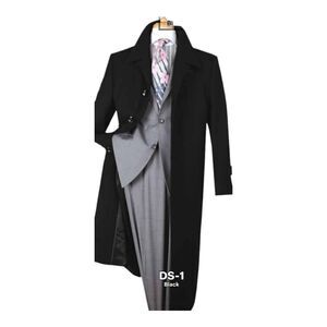 MEN'S BLACK DIAMOND 100% WOOL GABERDINE FULL LENGTH BLACK DUSTER COAT DS-1.