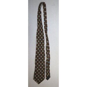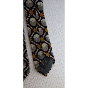 MEN'S BLUE RED CREAM GOLD GEOMETRIC PRINT 100% SILK TIE - NECK TIE - ITALY
