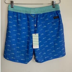 MENS BOOGIE BOARD SWIM TRUNK IN FISH PRINT ON MARINA BLUE