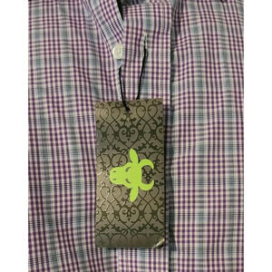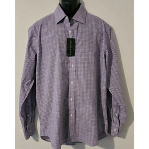 MEN'S BRISTOL & BULL SHIRT PLAID NAVY PURPLE WHITE CONTRAST TRIM LARGE NEW