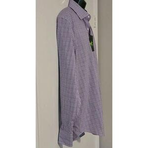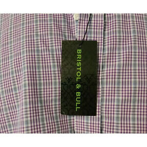 MEN'S BRISTOL & BULL SHIRT PLAID NAVY PURPLE WHITE LARGE LONG SLEEVES NEW W TAGSSIZE L -BEAUTIFUL FABRICNAVY, PURPLE, WHITE SMALL PLAIDCONTRAST TRIM ON CUFFS AND NECKLINEBUTTON FRONT CLOSURE LONG SLEEVES