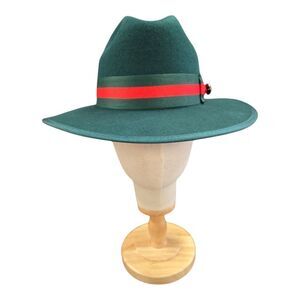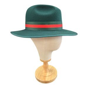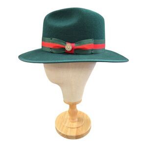 MEN'S BRUNO CAPELO DARK GREEN WESLEY WIDE BRIM PINCH FRONT FEDORA HAT. WE-970.