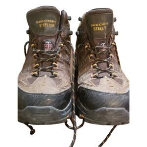 MEN'S: Brown SZ 8.5 Skechers STEEL TOE BOOTS Waterproof Oil & Slip Resistant