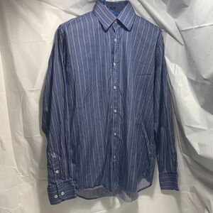 Men’s Bugatchi Blue & White Striped Button Down Long Sleeve Shirt Size L