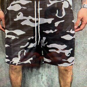MENS CAMO PRINT DRAWSTRING WAIST SHORTS