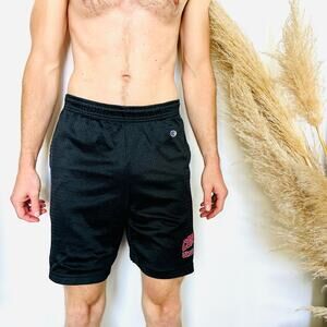MENS CHAMPION Black Red Basketball Mesh Cornell Drawstring Workout Gym Shorts M