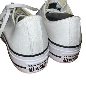 CONVERSE CANVAS PLATFORM OX CHUCK TAYLOR ALL STAR MEN SHOES Inspired by the iconic looks of '90s bands, these platform Chucks are sure to turn heads. Canvas can be as refined or edgy as you'd like, while a double-stacked sole takes you higher. Platform canvas Low top sneakers Elevated platform for added height Lace-up style for adjustable fit Iconic star ankle patch Color: White/Black/White