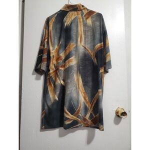 The shirt is made of high-quality silk and rayon material, and requires dry clean only. It is vintage and part of the SILVERSILK product line, with no modifications or personalization. This unique and eye-catching shirt is perfect for any man looking to add some color and style to his wardrobe. Chest is 44in. Length is 33in. T12