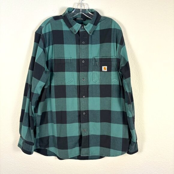 MEN'S Carhart Shirt Rugged Flex Relaxed Fit Green Plaid Button-Down Flannel L