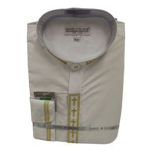 MEN'S DANIEL ELLISSA WHITE W/GOLD EMBROIDERY BANDED COLLAR DRESS SHIRT. DS2005C.