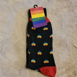 MEN'S DAVCO BLACK RAINBOW HEARTS "LOVE IS LOVE" CREW SOCKS, NEW!