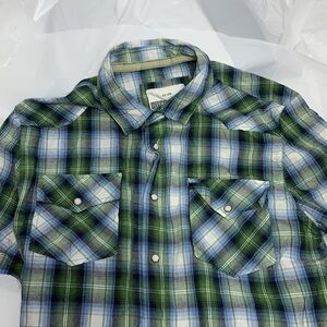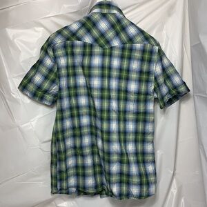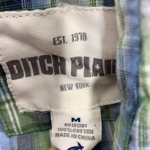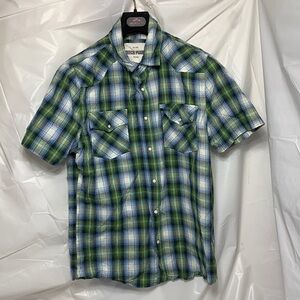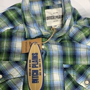 Men’s Ditch Plains Green & Blue plaid snap down Short sleeve shirt Size M NW