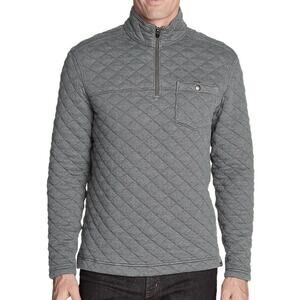 MENS EDDIE BAUER Grey Gray Quilted Half Zip Pocket Pullover Sweatshirt Sweater S