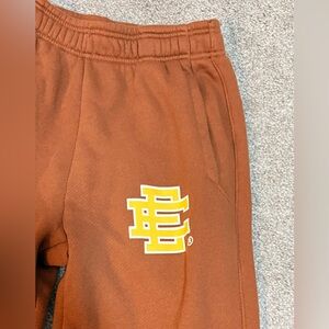 The product is a pair of Eric Emanuel EE Basic Sweatpants in size small, designed for men. The sweatpants come in a stylish brown color and feature a regular fit, making them a versatile and comfortable option for everyday wear. Perfect for adding a touch of urban-inspired style to any casual outfit, these sweatpants embody the hip and trendy aesthetic of the brand Eric Emanuel.