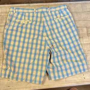 MEN'S FAIRWAY & GREENE SHORTS SIZE 40 PLAID BLUE ORANGE GOLF