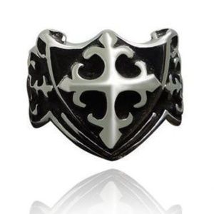 MEN'S FASHION RING SILVER STEEL CROSS SHIELD RING SIZE 8 MENS RING