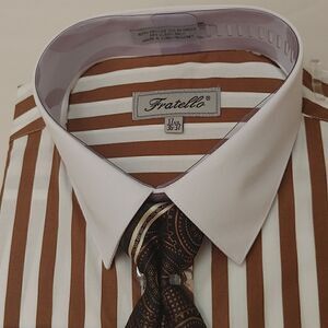 MEN'S FRATELLO TAN-WHITE VERTICAL DRESS SHIRT COMBO PACK.