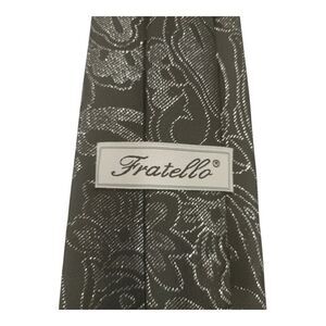 MEN'S FRATELLO TIE & HANKY SET BLACK AND SILVER METALLIC PAISLEY PATTERN.